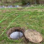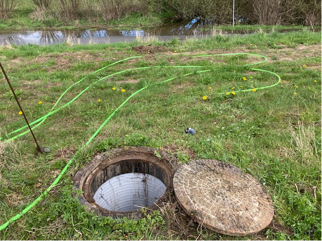 Brønden hvor propen blev fundet. Et stykke rørplastik satte sig fast og dannede prop i et rør- og drønsystem langs Eltangvej nær Elmevangen og Elmedraget. Foto: Kolding Kommunes Entreprenørafdeling.